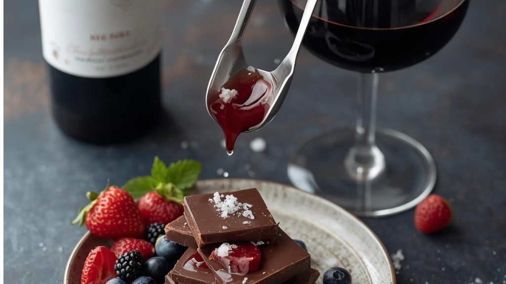 塩のアクセントが効いた「塩チョコ」は、ワインの甘みや果実味を引き立ててくれる、意外性のある組み合わせです。ポイントは、チョコレートの塩気が生むコントラスト。スイカに塩を添えると甘さが際立つように、塩味が加わることで、ワインのフルーティーさがよりはっきりと感じられます。
