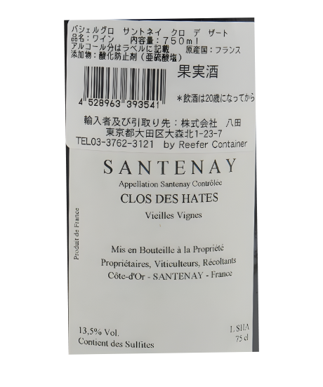 - サントネイ村名の最も優れたクリュの一つで、1級並みの味わいが楽しめます。しっかりとした果実味、スパイスのニュアンス、ミネラル感、フレッシュで穏やかなタンニンが魅力の赤ワイン。