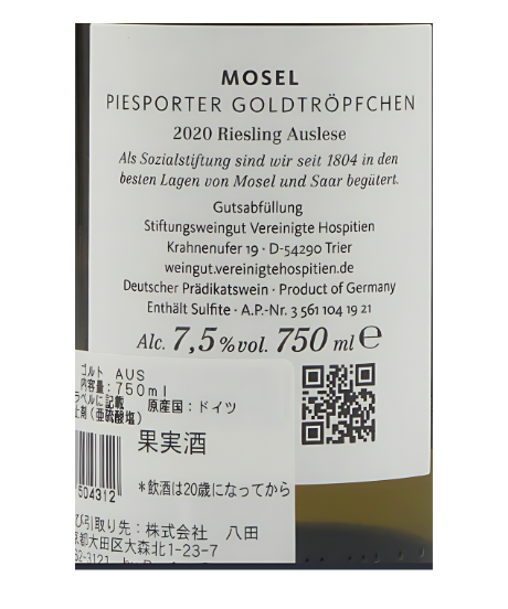 ホスピテン・ピースポーター ゴルトトレプヒェン リースリング アウスレーゼ 2020