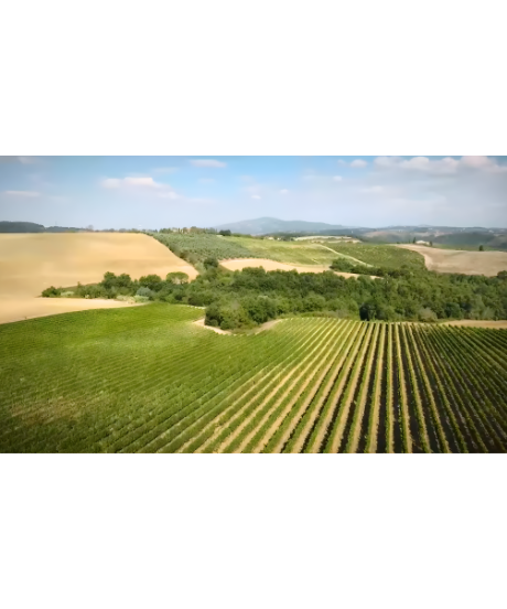 畑はトスカーナ地方のモンテスペルトリの丘に位置し、粘土と石灰質の土壌。栽培には短梢コルドン仕立てを採用。ブドウ樹は収量を制限して(5,000kg/ha)ポリフェノール値が高く、しっかりとしたストラクチャーを持つワインを造っています。ブドウは品種ごとに分けて醸造。ステンレスタンクで発酵後、フレンチとアメリカンオークのバリックで12~18か月熟成。さらに瓶内で6か月の熟成を経て出荷。